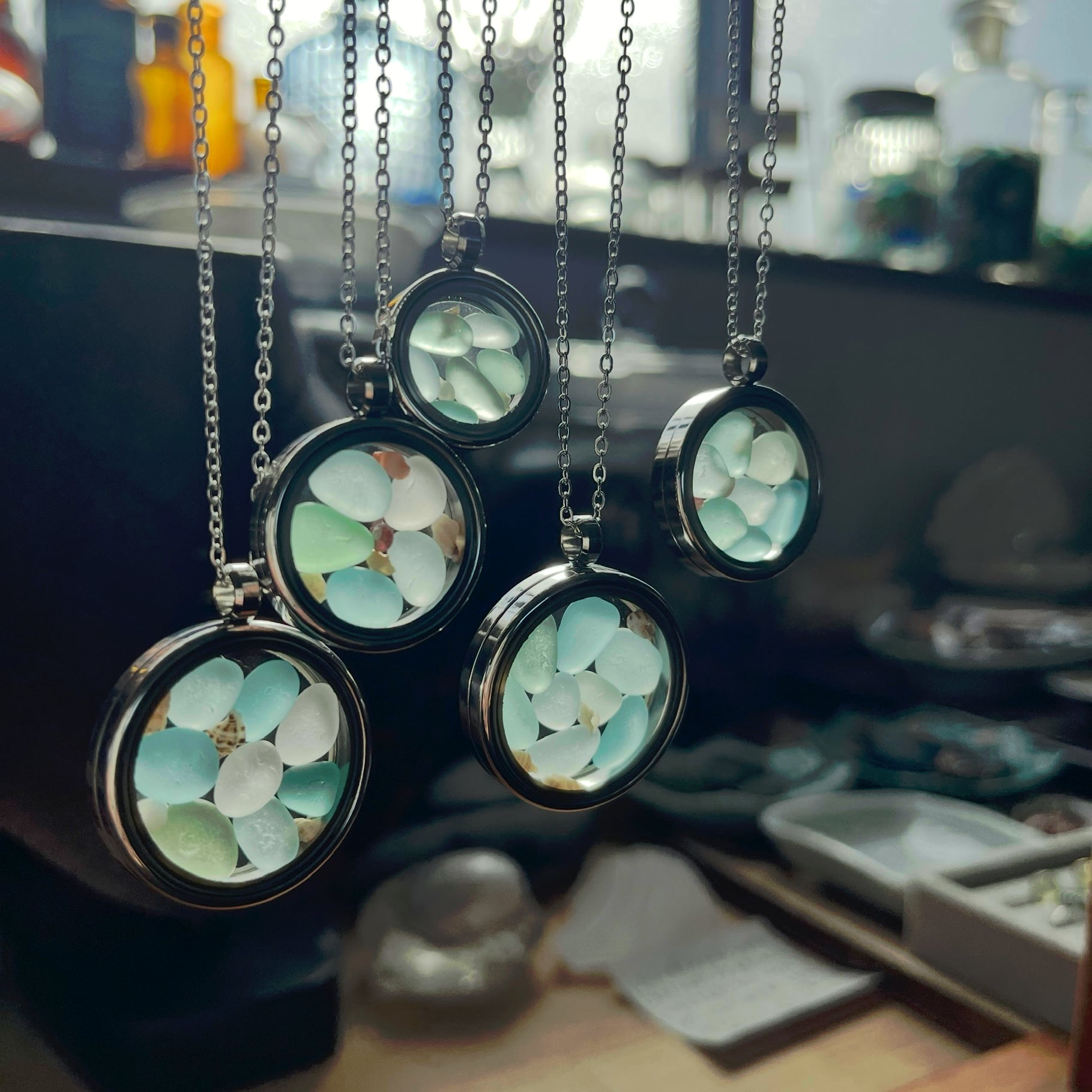 ✤ペンダントとしてはもちろん、窓辺のオーナメント、車のルームミラーのアクセサリーとしても、優しく光を通すシーグラスが活きる 御活用方法ですね。