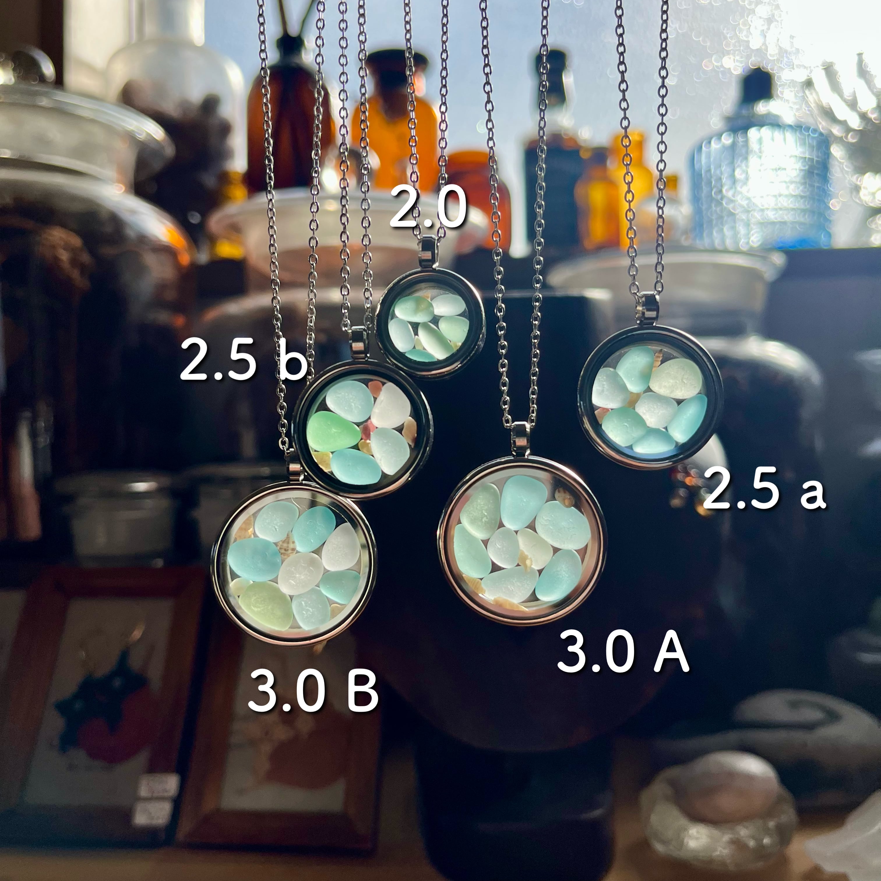 美しい ミニシーグラスを、色々な角度から お楽しみいただけるよう、両面ガラスのケースに封入しました。ガラス同士、硬度が同じ。なるべく動いて傷がついてしまわぬよう、微小貝も封入してみました。お好みで、足したり引いたりしてください。