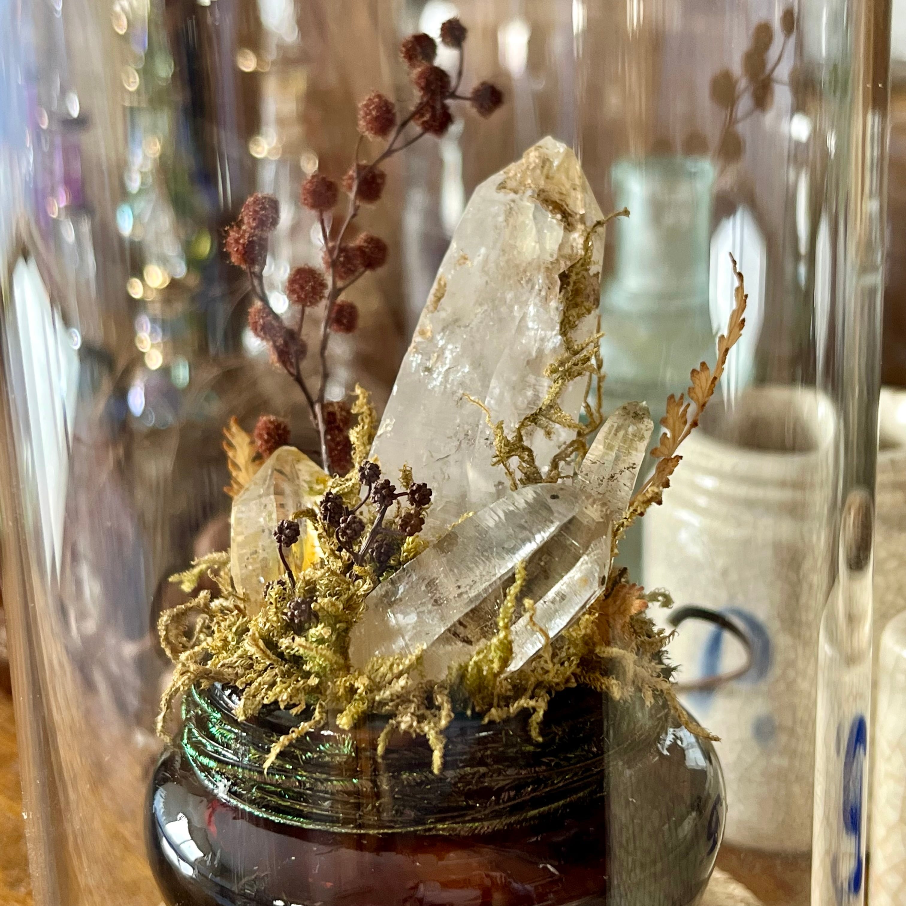 干渉のある水晶をありのまま、アンティーク感と哀愁のあるアレンジにしました。
